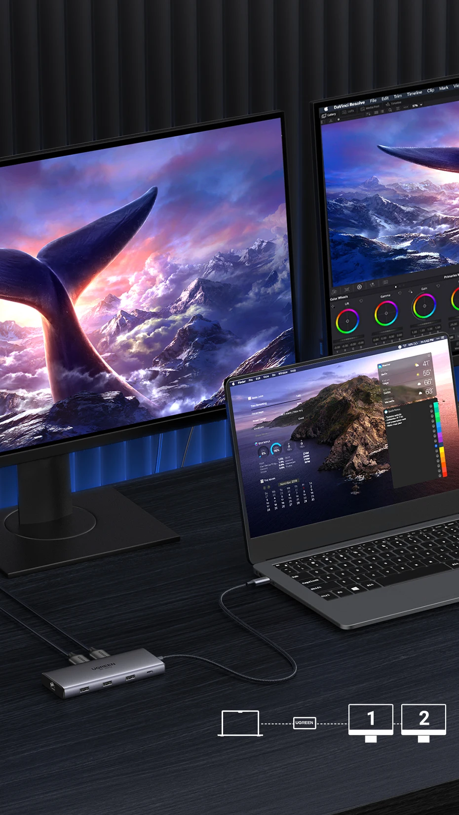 Conçu pour les créateurs de contenu : l’extension double écran 4K@60Hz facilite l’édition vidéo multi-flux.
