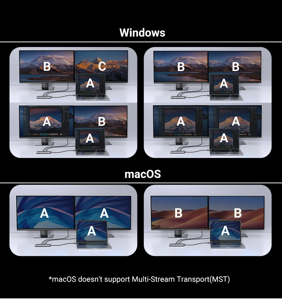 *Remarque : macOS ne prend pas en charge le MST (Multi-Stream Transport)